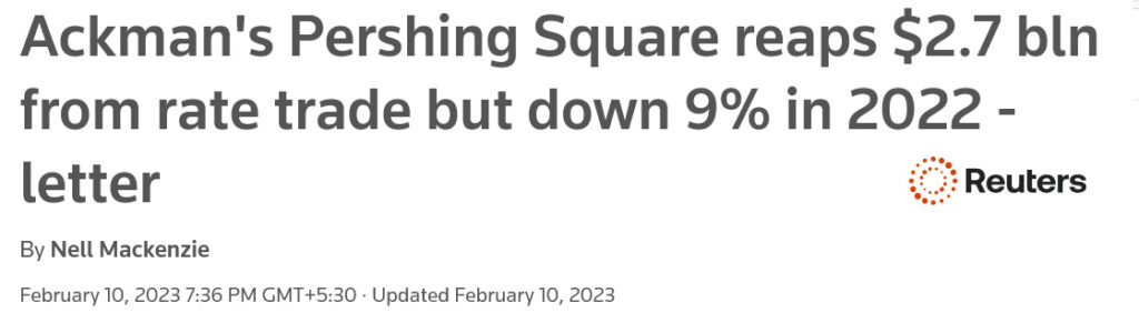 During that exact period, through Pershing Square Capital Management, Bill Ackman generated approximately $2.7 billion by hedging interest-rate hikes and correctly positioning for persistent inflation and aggressive monetary tightening. The gains were disclosed later in 2022 and widely reported in financial media.