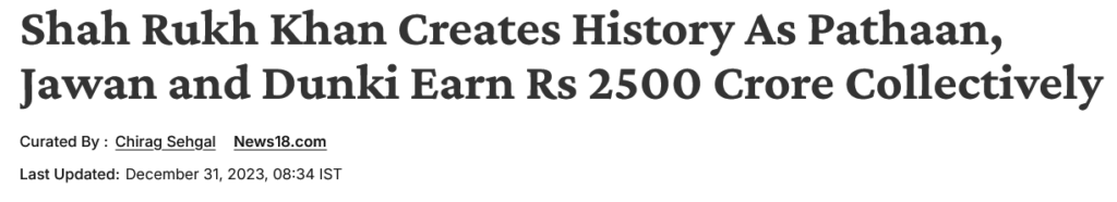 That year, Shah Rukh Khan achieved something unprecedented in Indian cinema. He became the only Indian actor to deliver two films crossing the 1000-crore mark in a single calendar year with Pathaan and Jawan. Combined with Dunki, his 2023 releases grossed over 2500 crore worldwide.